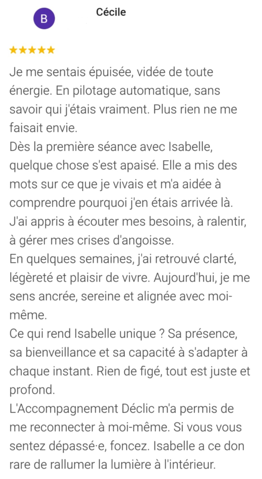 Aujourd’hui, je vous guide avec une approche rapide et complète qui combine un accompagnement personnalisé, la thérapie ACT (Acceptation et Engagement) et du soin énergétique si vous le souhaitez.